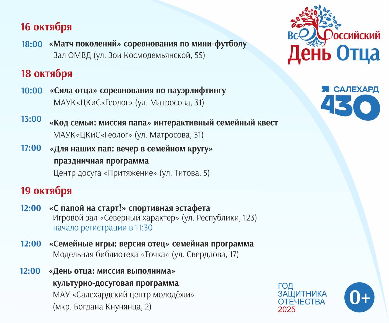 В Салехарде пройдут праздничные мероприятия, посвящённые Дню отца. Приходите всей семьёй, вас ждут весёлые игры, развлекательные программы, творческие площадки и отличное настроение!
