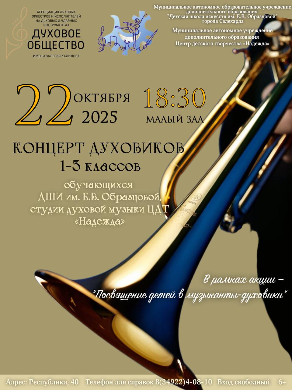 Образцовой состоится концерт 1-3 классов обучающихся ДШИ им. Е.В. Образцовой и студии духовой музыки ЦДТ "Надежда". Мероприятие пройдет в рамках акции "Посвящение детей в музыканты-духовики", которая проводится в России впервые. С инициативой её проведения выступило Российское духовое общество. Идея была представлена на Общем собрании членов Ассоциации "Духовое общество имени Валерия Халилова" в рамках XI Санкт-Петербургского международного форума объединённых культур.