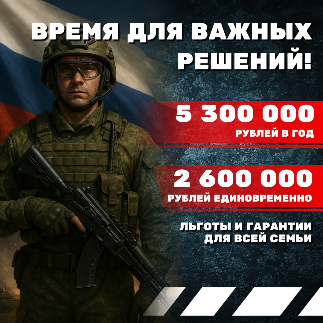 Единовременная выплата 2,6 млн рублей при заключении контракта