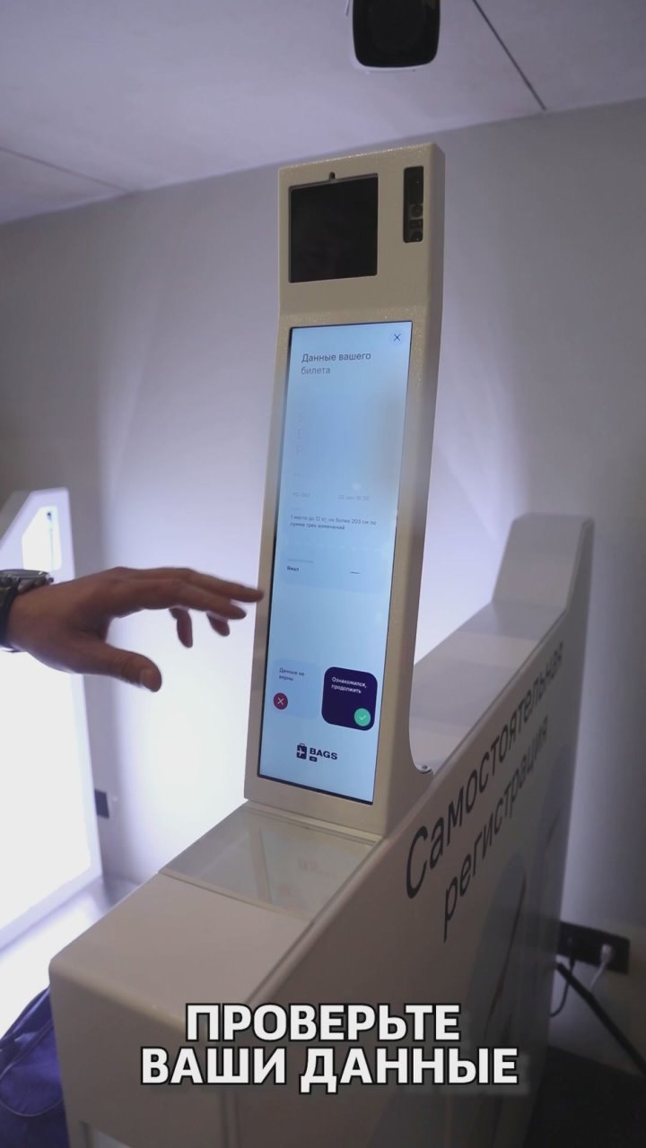 Сдать багаж через BAGS ID можно за 6 часов до рейса. Просто поместите багаж в киоск, система автоматически взвесит его и проверит размеры, а данные сверит с выбранным тарифом.