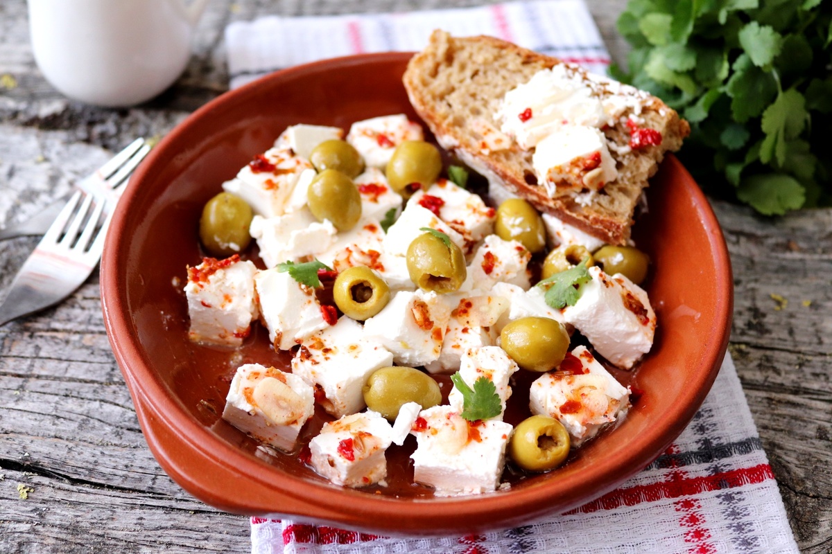 - 170 г рассольного сыра (брынза, Фетакса или Сиртака)