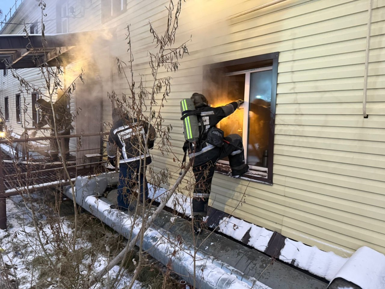 Дым шел из окон квартиры во втором подъезде. В этот момент внутри дома находилось три человека, в том числе подросток. Ребенка эвакуировали через окно с помощью выдвижной лестницы, взрослых вывели через коридор.