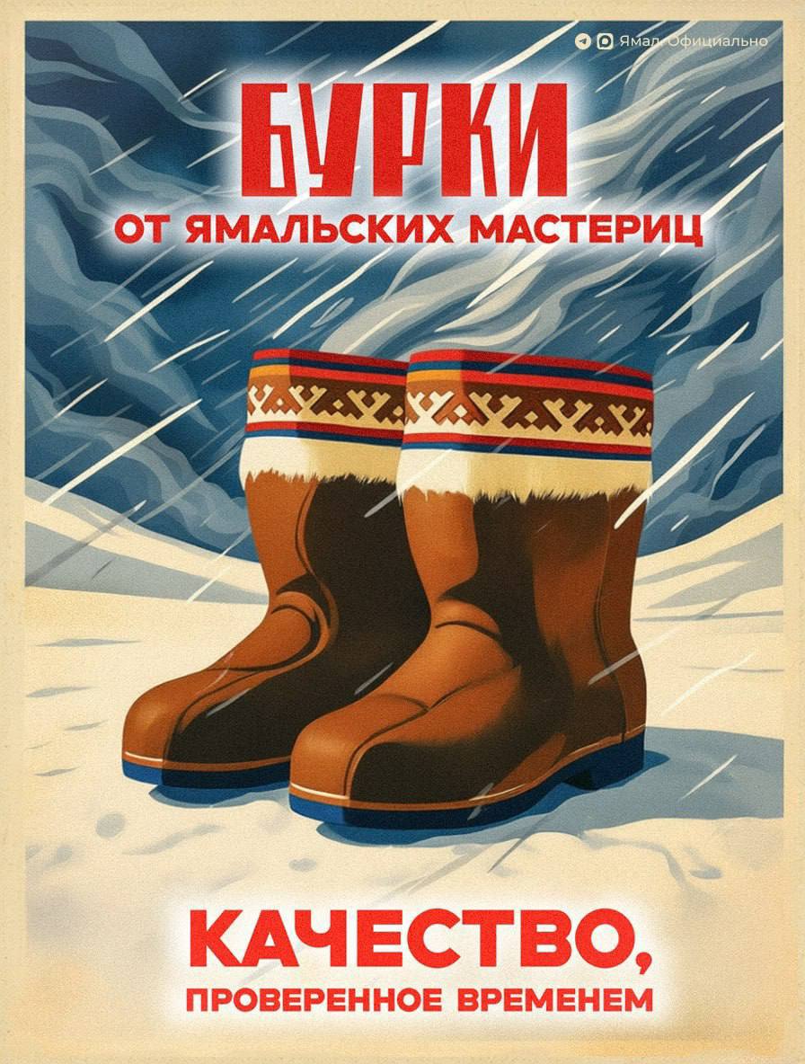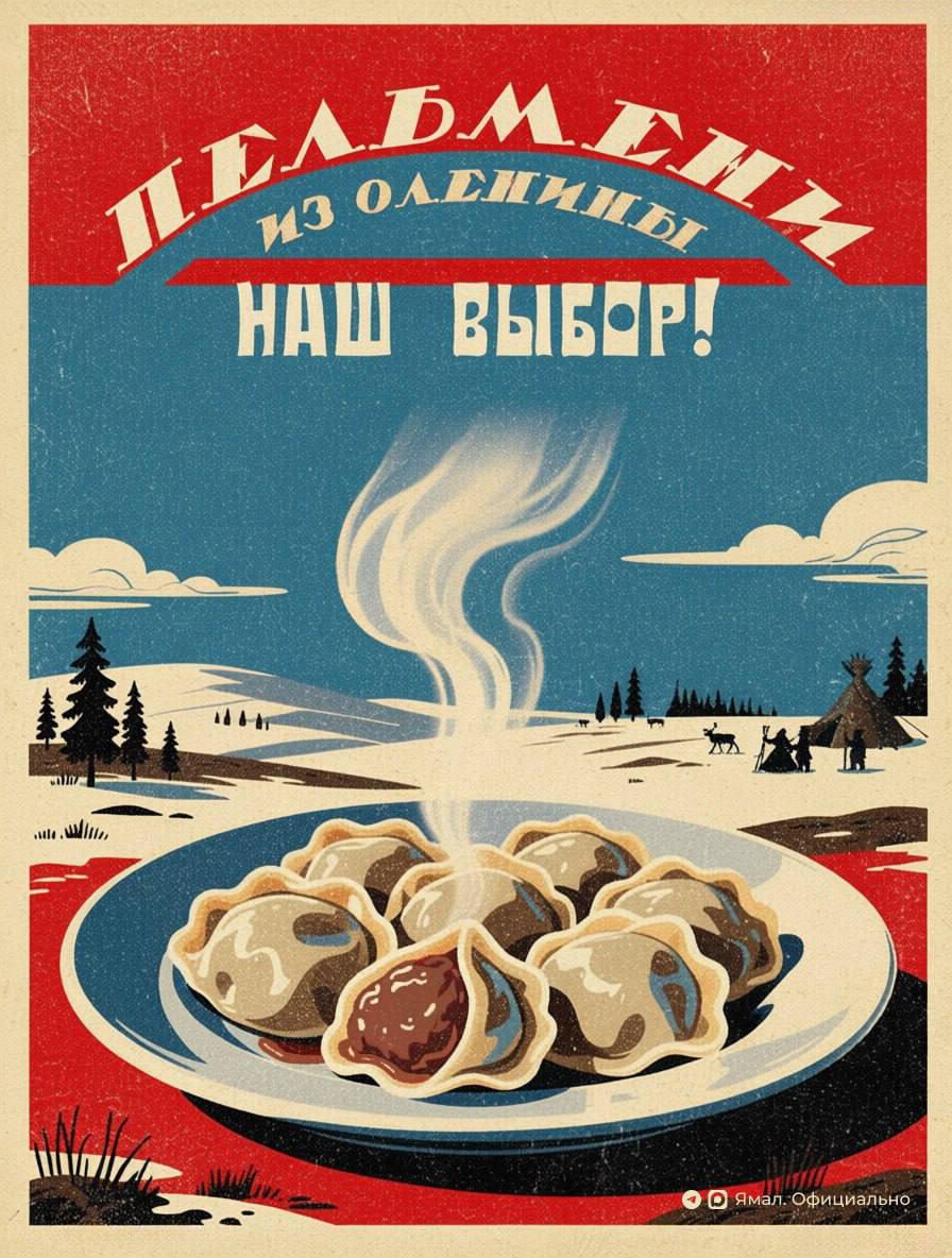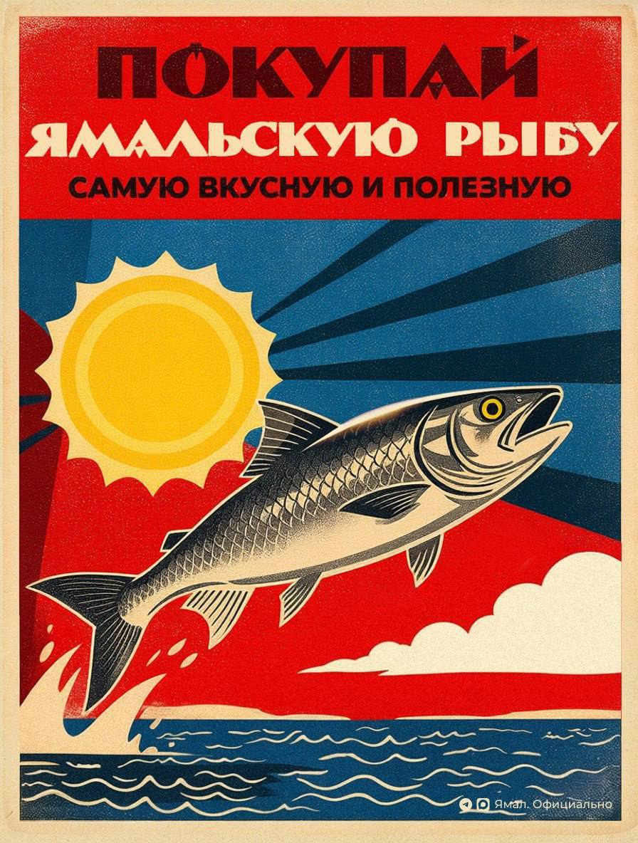 Сегодня в России – День рекламщика. Отличный повод для творческого эксперимента: мы решили оглянуться назад и представить, как могла бы сегодня выглядеть реклама того, чем знаменит Ямал, в эстетике советских плакатов – той самой, с лаконичной графикой, мощными лозунгами и яркими, но строгими цветами