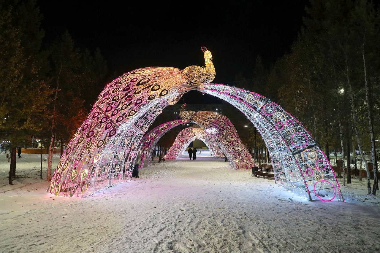 Здесь завершили обновление центрального входа. В парке имени Е.Ф. Козлова установили светящиеся арки, напоминающие жар-птиц, и новые арт-объекты из экологичных материалов.