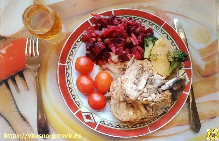 После того как птица пропитается маринадом, ее укладывают в форму, застеленную фольгой, и запекают в предварительно разогретой духовке при 200 градусах. В процессе приготовления стоит поливать курицу выделяющимся соком, что сделает корочку хрустящей и ароматной. Когда курица почти готова, добавьте к ней нарезанные яблоки и брокколи, чтобы они также пропитались мясными соками и ароматами.