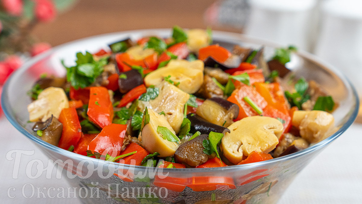 Основные ингредиенты проводятся в гармонии: обжаренные баклажаны, сладкий перец и пикантные грибочки создают невероятный вкус, который дополнен свежей зеленью. К тому же, этот салат легко адаптируется под личные предпочтения: вместо маринованных грибов можно использовать обжаренные шампиньоны, а подача в теплом виде сделает его еще более аппетитным.