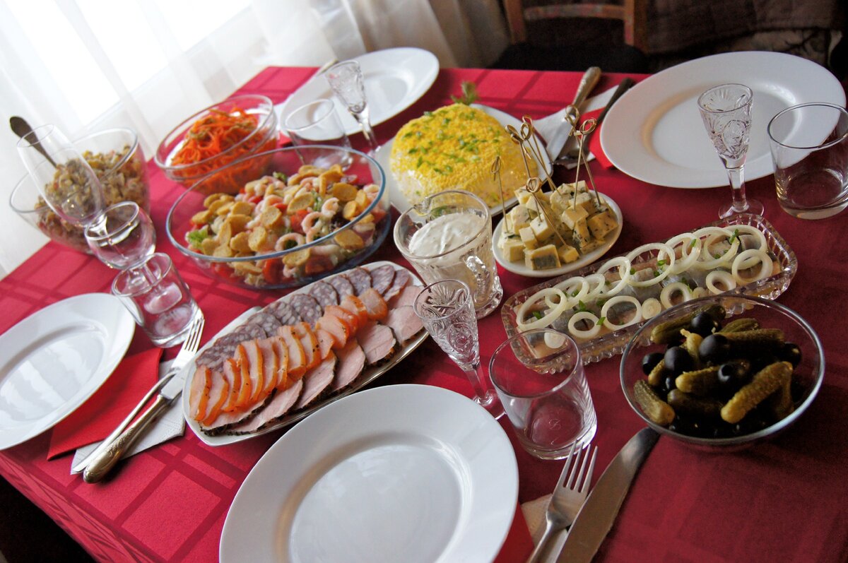 - Легкие закуски: Для комфортной атмосферы подойдут простые, но вкусные закуски. Например, салат с красной рыбой, хе из курицы с морковью, оливки и маринованные огурцы будут отличным дополнением к разговору.