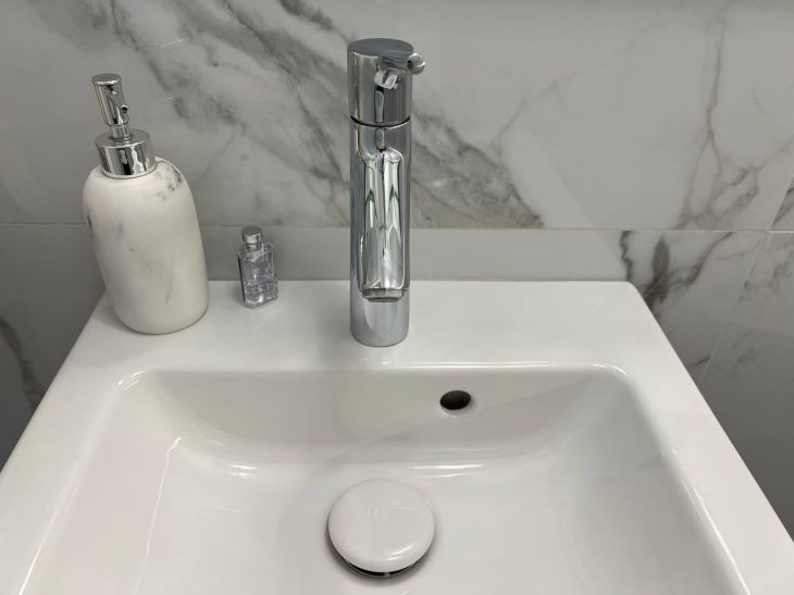 Достаточно пяти минут, чтобы сода с уксусом вступили в реакцию и расщепили все загрязнения на поверхности раковины.