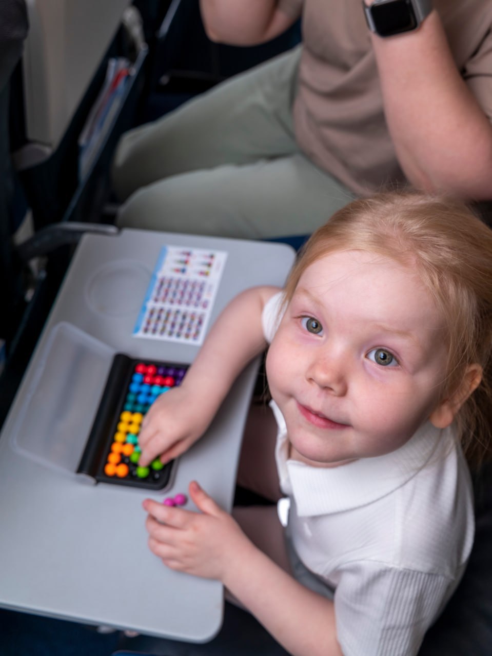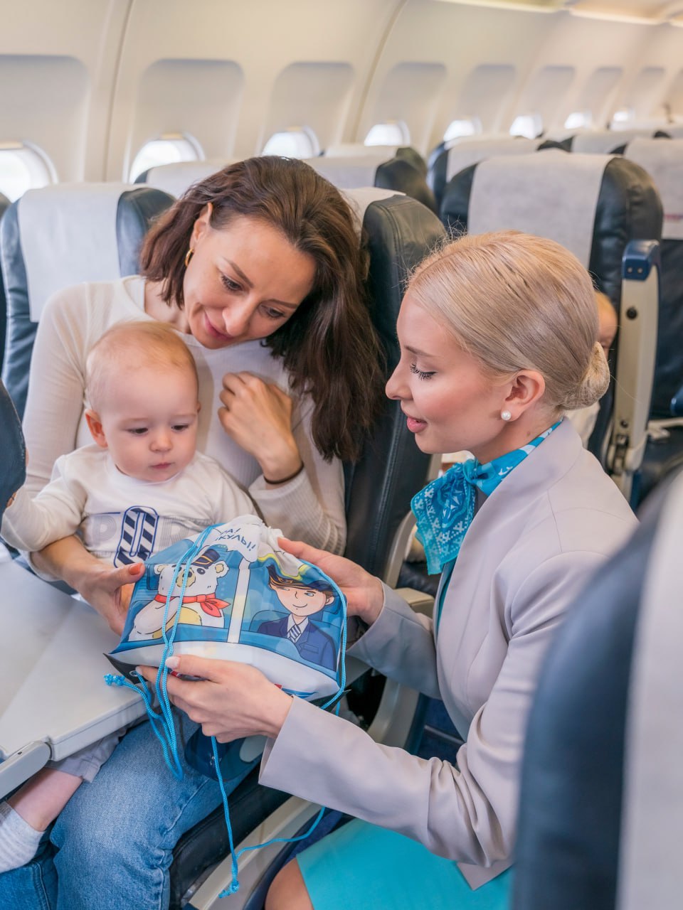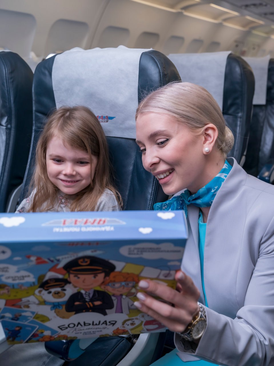 Для маленьких пассажиров подготовлены: комплекты с развивающими игрушками для детей от 0 до 2 лет, набор со стильной бутылкой для воды, IQ-пазлом и настольной игрой "3 в 1" для ребят от 2 до 11 лет.