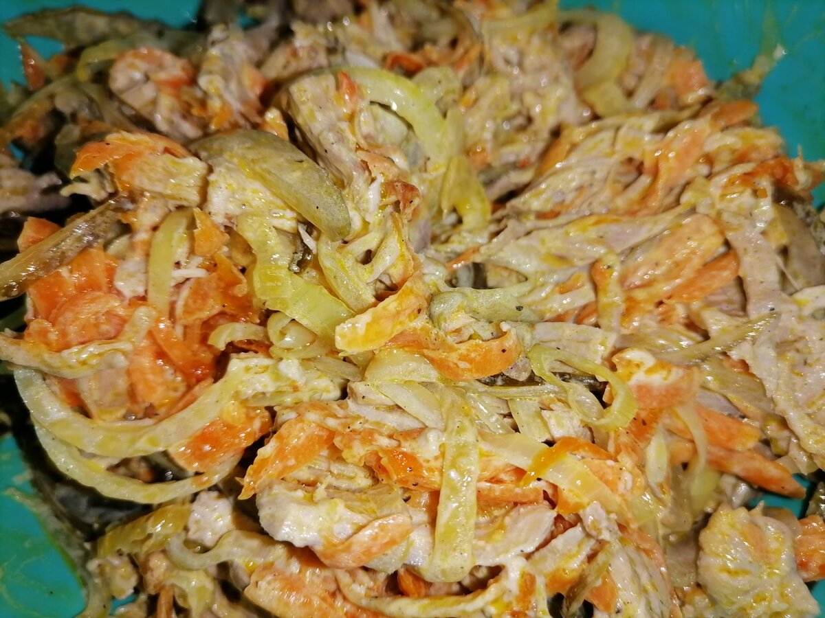 Печень — субпродукт, который не все любят. Чтобы разнообразить вкусовую палитру салата и сделать его более универсальным, стоит подумать о замене печени на отварное мясо. Это может быть свинина, говядина или даже курица. Мясные ингредиенты не только разнообразят текстуру, но и избавляют от специфического привкуса, присущего печени, что делает блюдо более приемлемым для широкой аудитории.