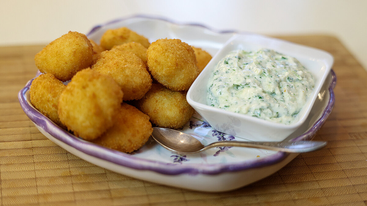 Для соуса смешать майонез и сметану в небольшой миске. На мелкой терке натереть яблоко и огурец, добавив немного соли. Важно отжать лишнюю жидкость и объединить мякоть с соусом. Затем добавить мелко нарезанные укроп и кинзу, тщательно перемешать. Теперь можно подавать ароматные наггетсы с приготовленным соусом и наслаждаться удивительным вкусом!