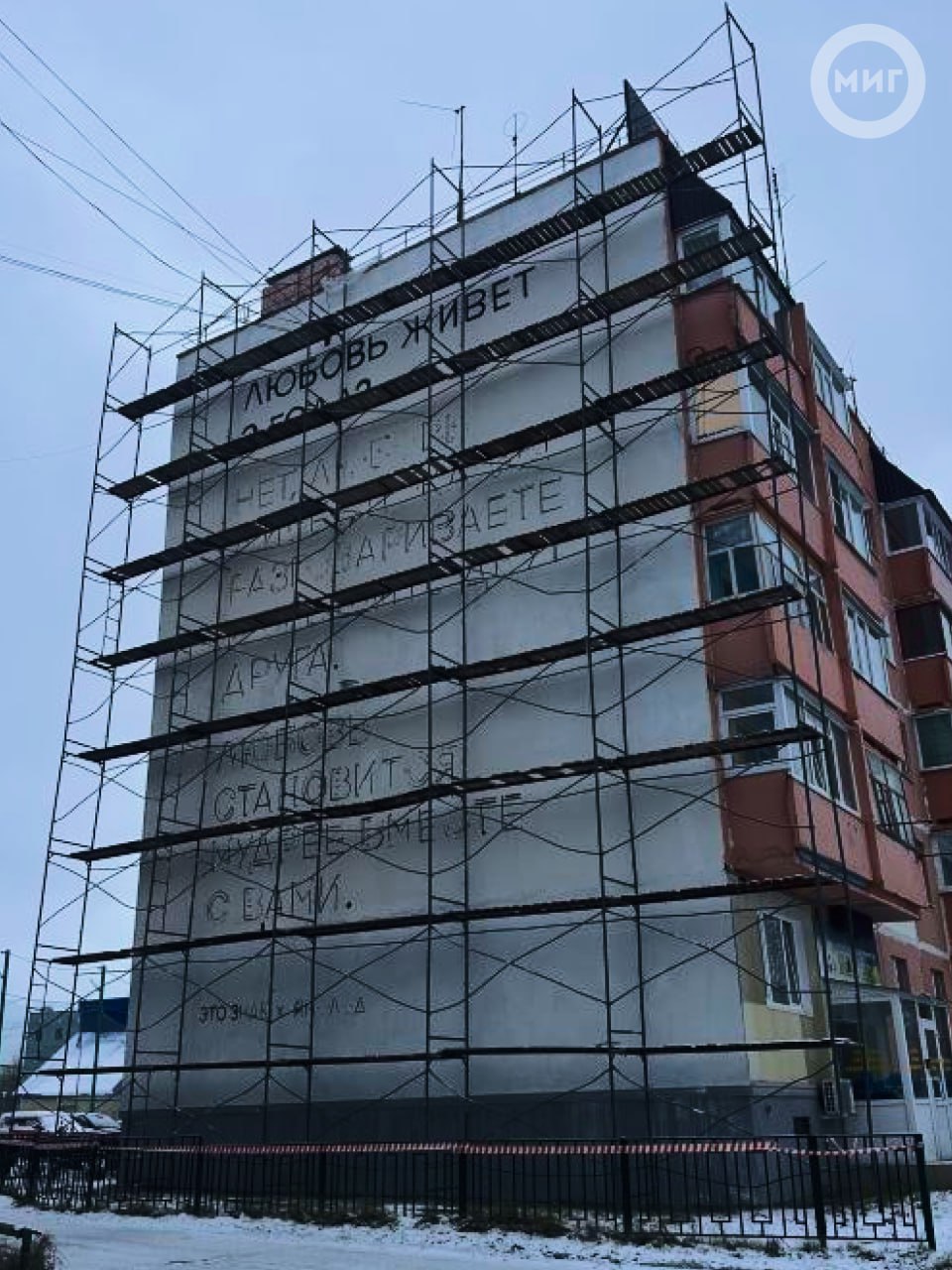 На стену дома №40 на проспекте Мира начали наносить высказывания о любви. Это совместный проект «Ямолод» и арт-команды «ЭТО ЗНАК».
