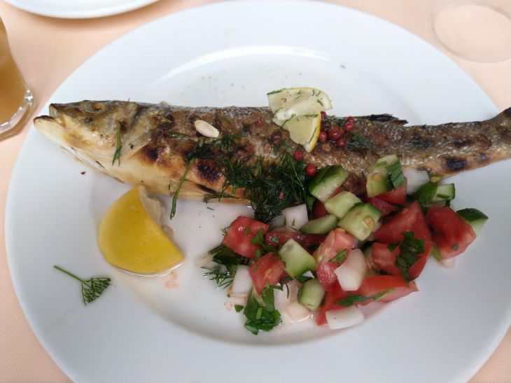 Возьмите 150 г филе трески или хека. Положите на противень с 100 г брокколи и 50 г моркови. Сбрызните 1 ч. л. оливкового масла, добавьте соль и травы. Запекайте 20 минут при 180 °C. Блюдо готово к ужину.