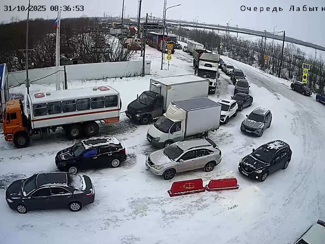 Автомобилисты ждут открытия переправы Салехард — Лабытнанги. Пробка скопилась с двух сторон.