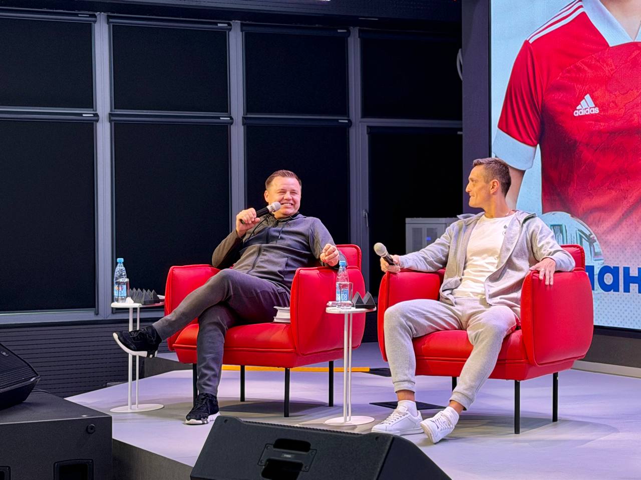 Борис Никоноров и Руслан Пименов провели встречу с футболистами таркосалинских спортшкол в формате «открытого диалога». Ребята задали интересующие их вопросы и получили наставления от опытных игроков сборной России по футболу.