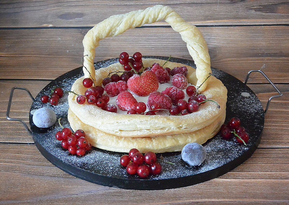Слоеное тесто — это удивительный атрибут кулинарного мира, который даёт возможность не только воплотить кулинарные фантазии в жизнь, но и порадовать близких оригинальными десертами. Фруктовая корзинка, наполненная творожным кремом и свежими фруктами, станет настоящим украшением любого стола. Всего 40-45 минут — и эта сладкая закуска готова удивлять вкусовыми изысками!