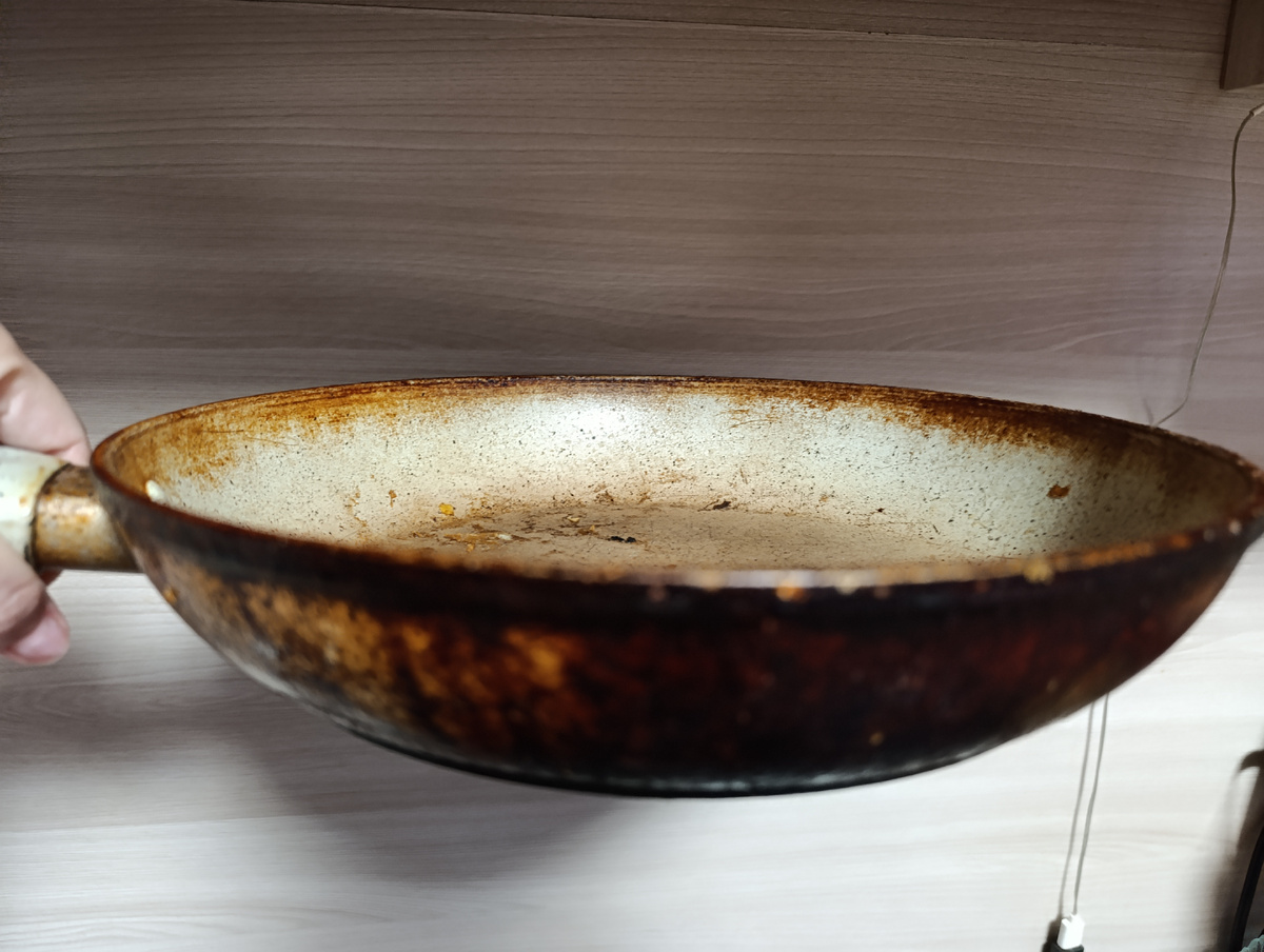 Кипячение с содой: Налейте литр воды в сковороду, добавьте 100 граммов соды и доведите до кипения. Этот метод не только очищает, но и дезинфицирует поверхность. Если нагар очень сильный, кипятите в течение 1-2 часов.