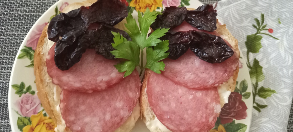 Эти простые, но необычные бутерброды с сырояленой колбасой, плавленым сыром и вялеными сливами захватят ваше внимание оригинальным сочетанием вкусов. Получившаяся закуска порадует любителей пикантных угощений своей легкой кислинкой, обогащая привычный вкус традиционных бутербродов.