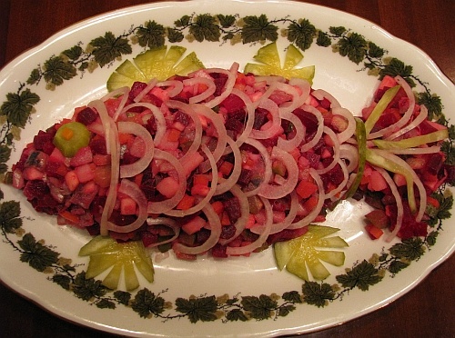 Винегрет можно подать в виде интересного оформления — например, в виде рыбы, украсив сверху полукольцами лука и тонкими кругами огурца. Это не только придаст блюду эстетический вид, но и сделает его центром внимания на любом столе. Попробуйте украсить блюдо так, чтобы оно выглядело не только вкусно, но и эффектно!