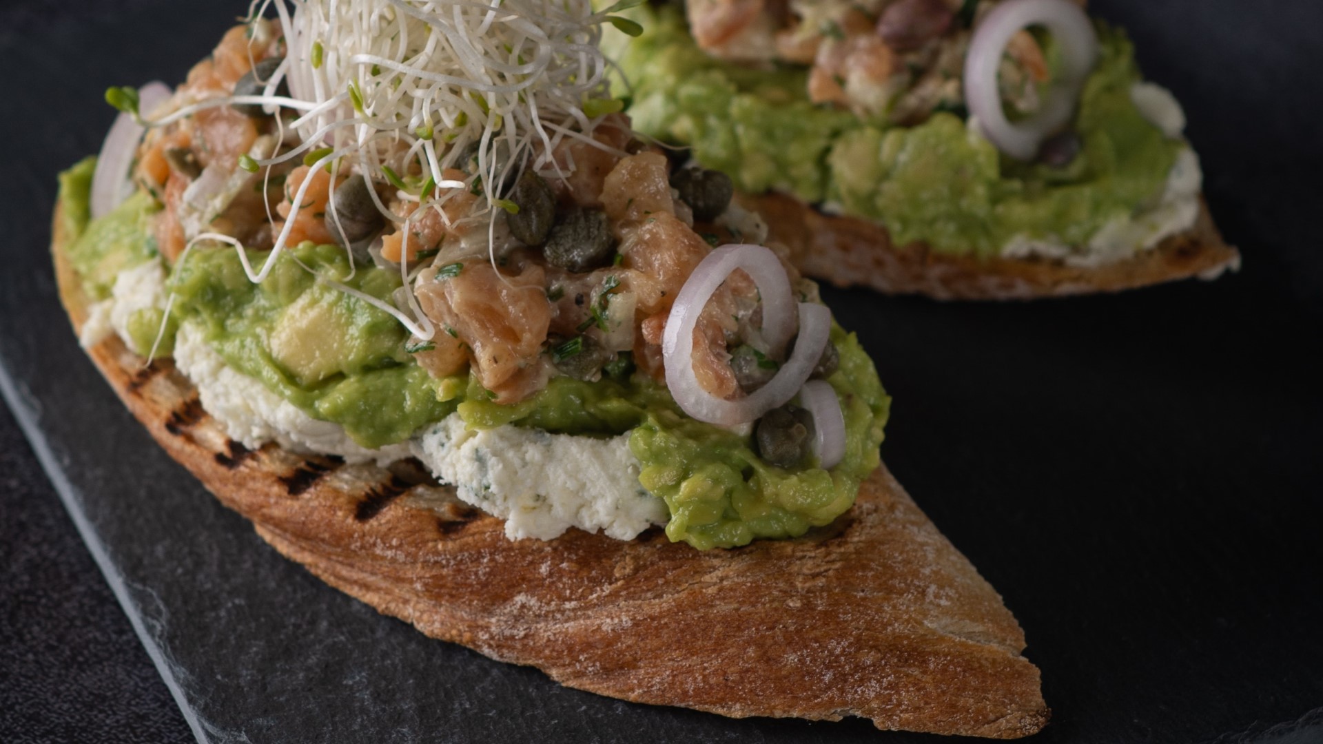 Приготовить вкусные брускетты к Новому году можно не только из форели. Например, из копченой горбуши получится не менее аппетитная закуска.