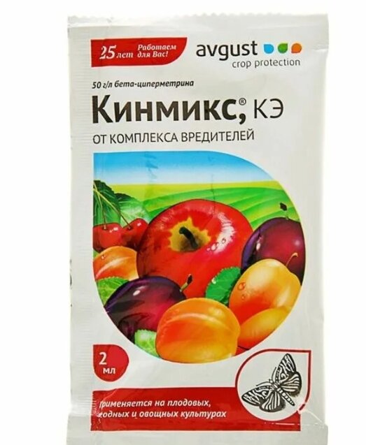- Токсичность: Кинмикс эффективно борется с насекомыми, но его токсичен для пчёл, поэтому рекомендуется использовать его в вечерние часы, когда опылители неактивны.