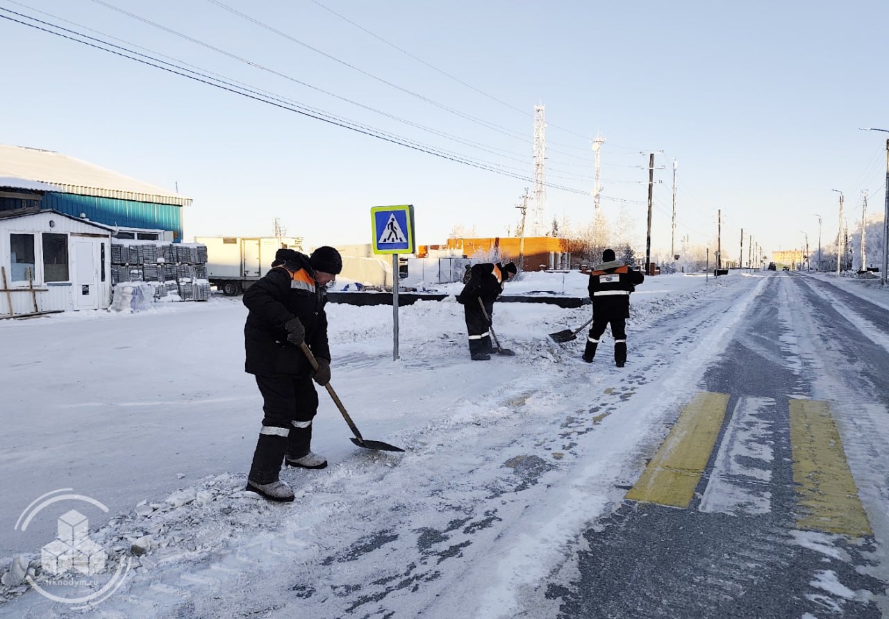 В Пангодах ведётся борьба со снегом и наледью