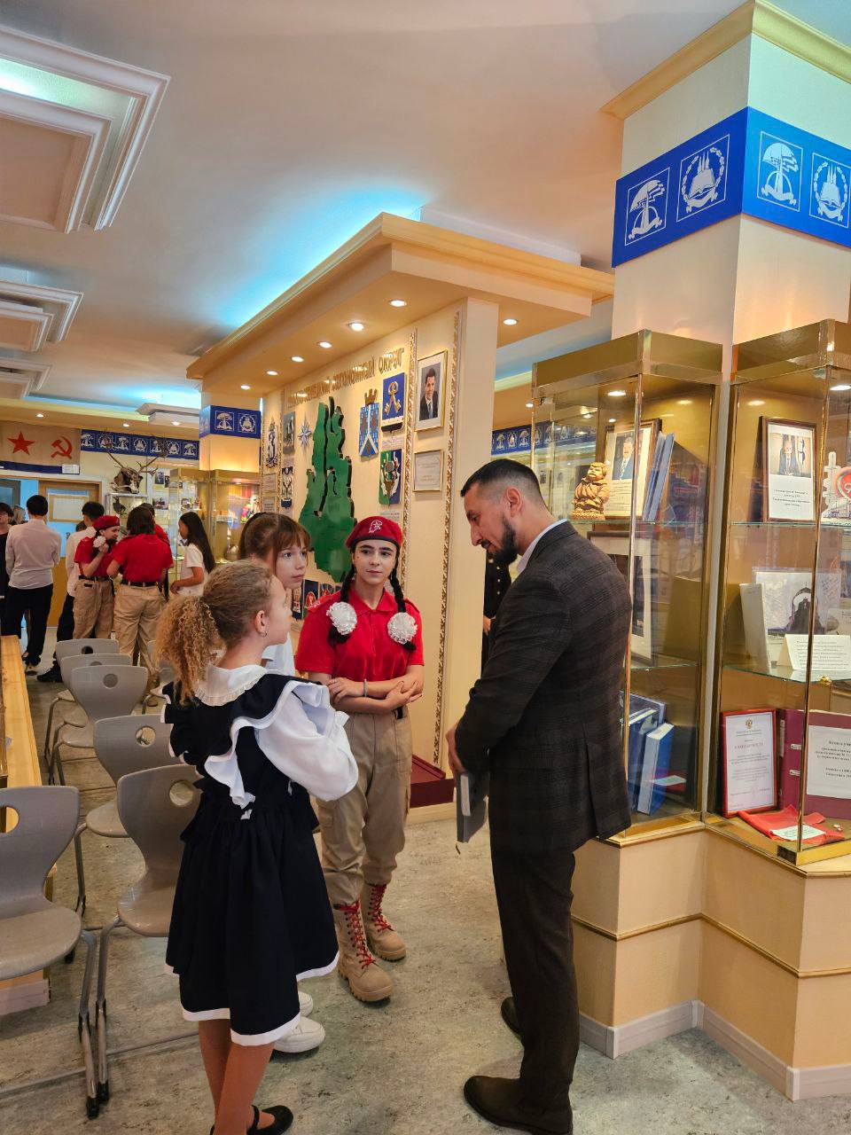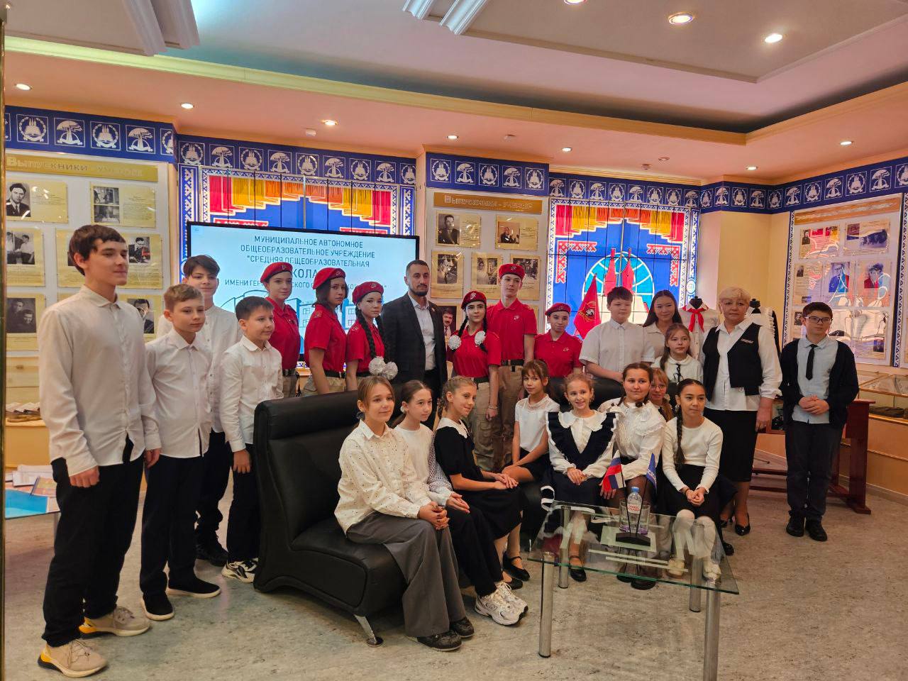 Сегодняшний день стажировки в Салехарде участника программы «Герои Ямала» Руслана Халметова начался с визита в первую школу, где он принял участие в «Классной встрече» с юнармейцами. Затем он посетил музей одной из самых старых школ города.