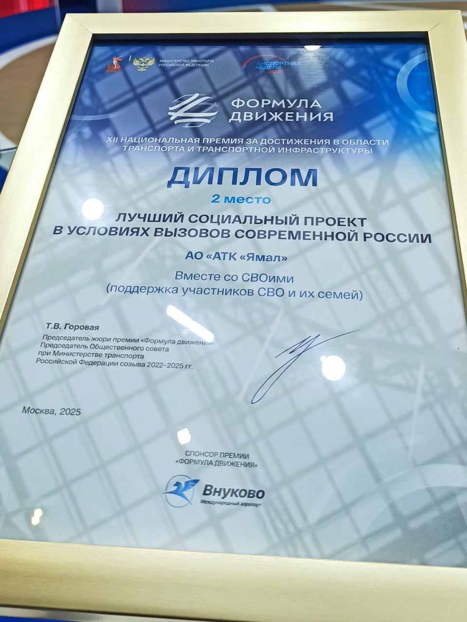 Авиакомпания "Ямал" заняла второе место премии "Формула движения – 2025"
