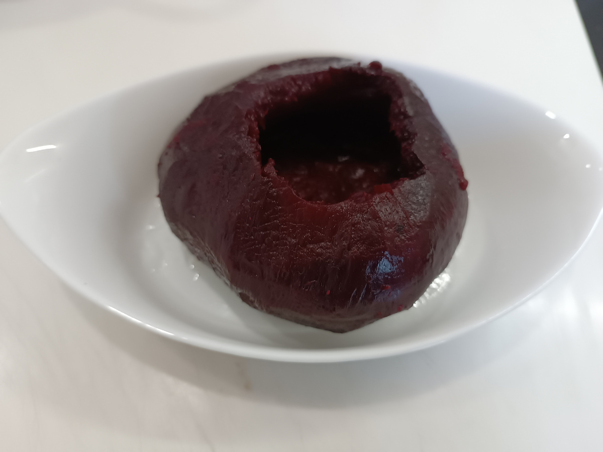 Сперва свеклу следует тщательно вымыть и отварить до готовности, избегая переваривания. После остывания очистить от кожуры. Затем с помощью ложки вынимите часть мякоти, стараясь не повредить стенки овоща.