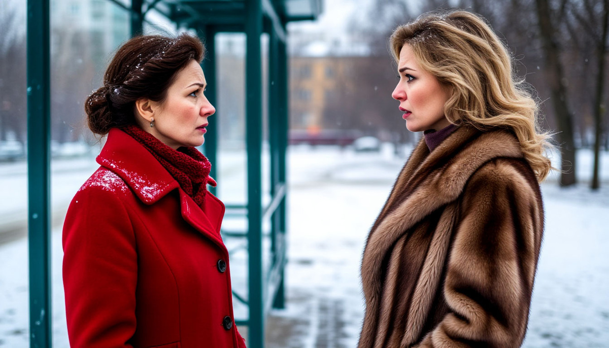 Прошло два года, зима выдалась особенно холодной. Выйдя из магазина, он заметил Надежду на остановке: она ждала автобус в старом пальто, а рядом стояла другая женщина в нарядной норковой шубе. Беглый взгляд выдал в ней ту самую шубу, подаренную Борисом. Надежда, заметив женщину, застыла на месте, словно в шоковом состоянии, и её взгляд был прикован к предмету мечтаний.