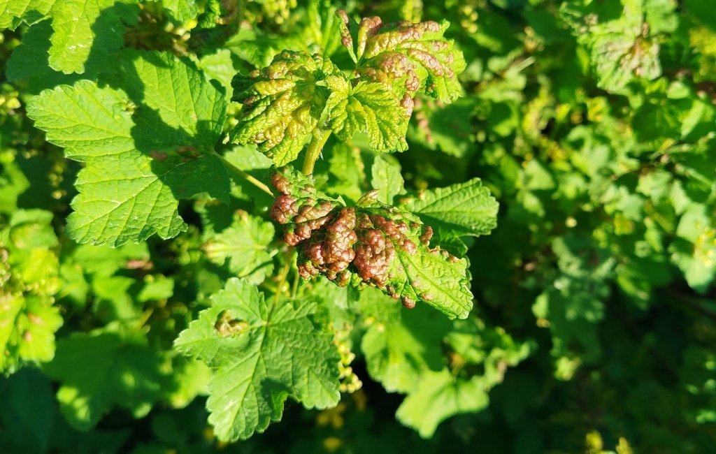 Как выявить наличие галловой тли? Обратите внимание на листья смородины: если они покрываются красными вздутиями, это сигнал тревоги. Тля высасывает соки, в ответ на это растения формируют грубые наросты, которые и называют галлами. Это приводит к деформации листьев, их опадению и угнетению самого растения.