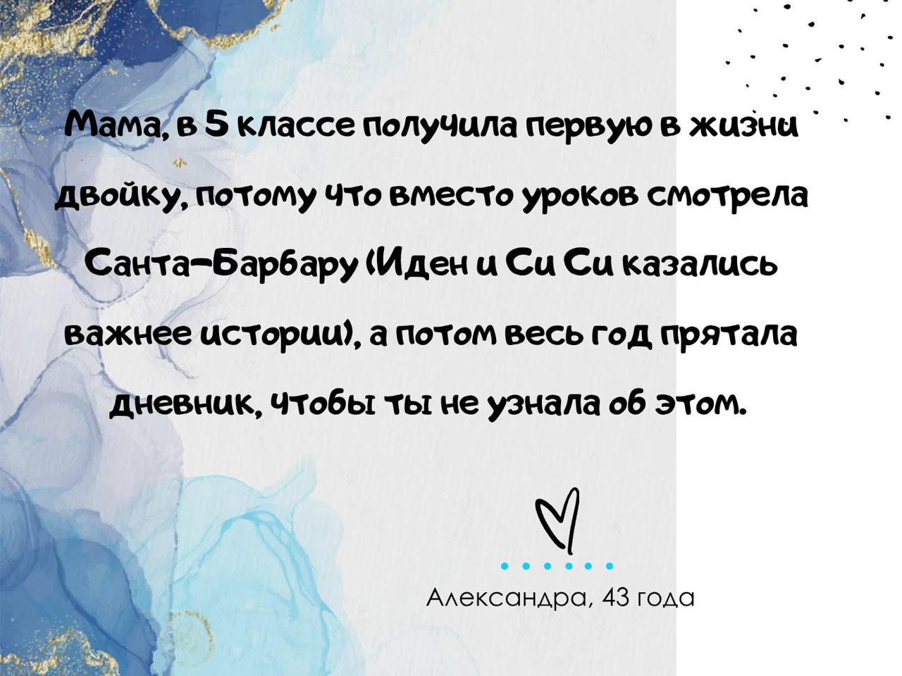 Помните, как в детстве мы старались спрятать от неё мелкие шалости: разбитую чашку, двойку в дневнике, царапину на коленке. Мы не хотели видеть тень огорчения в её глазах, потому что её улыбка была для нас самым главным солнцем.