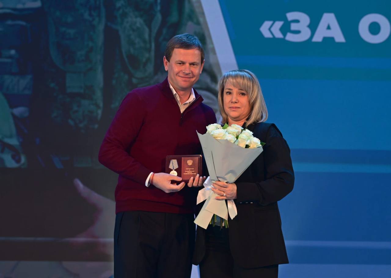 С праздником женщин поздравил глава города Антон Колодин. Он вручил одной из гостий медаль «За отвагу» для сына, который сейчас проходит лечение.