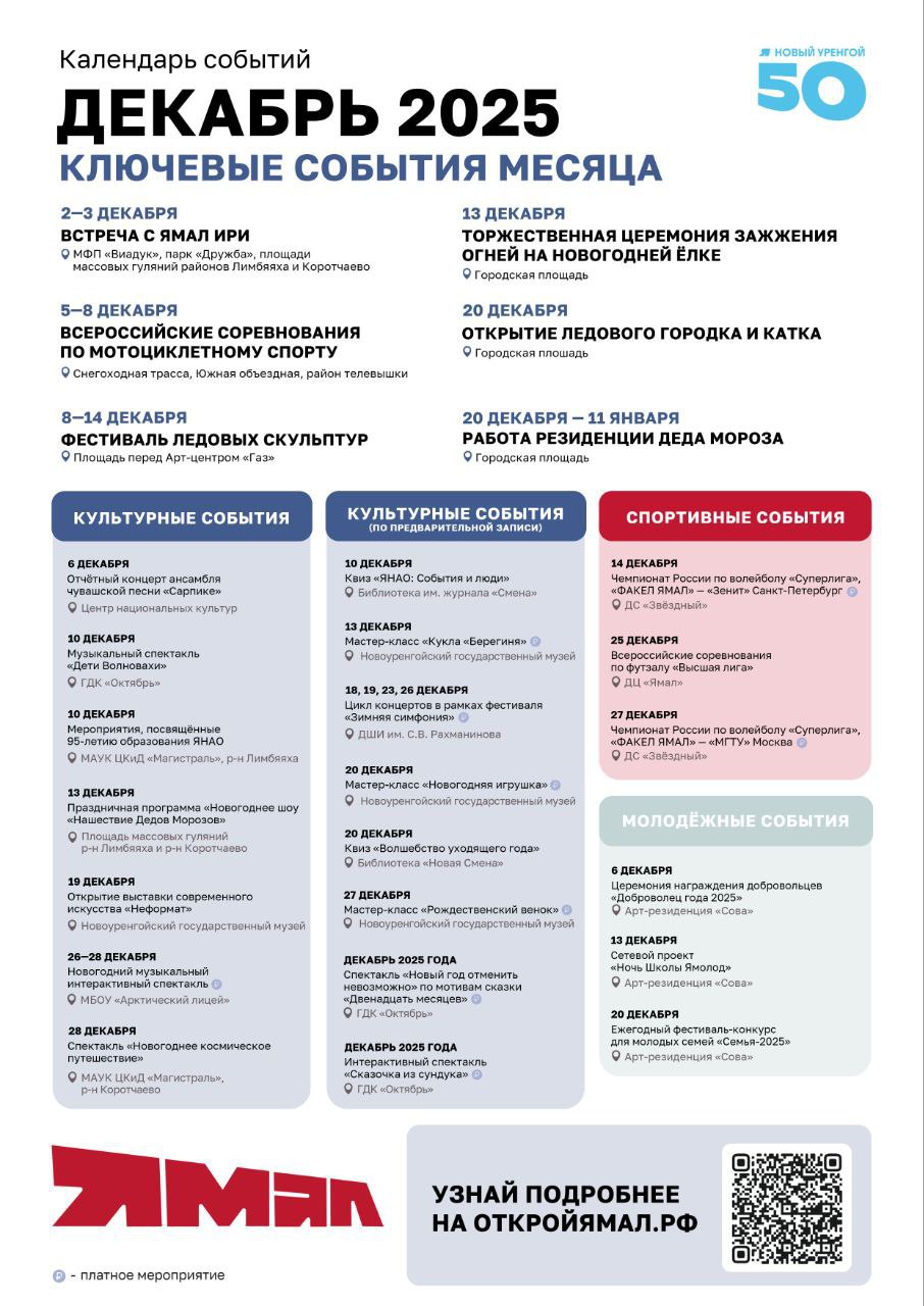 Афишу декабрьских мероприятий опубликовал телеграм-канал «НУР. Официально | Новый Уренгой».