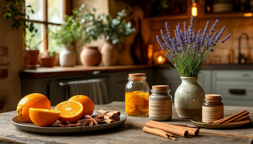 На кухне, где зачастую чувствуется запах готовки, прекрасно помогут такие ароматы, как лимон, апельсин, мята и розмарин. Эти ноты освежают пространство, не перебивая при этом естественные ароматы блюд. Для усиления эффекта можно добавить несколько капель эфирного масла в диффузор или использовать стильную посуду с водой и ломтиками цитрусовых.