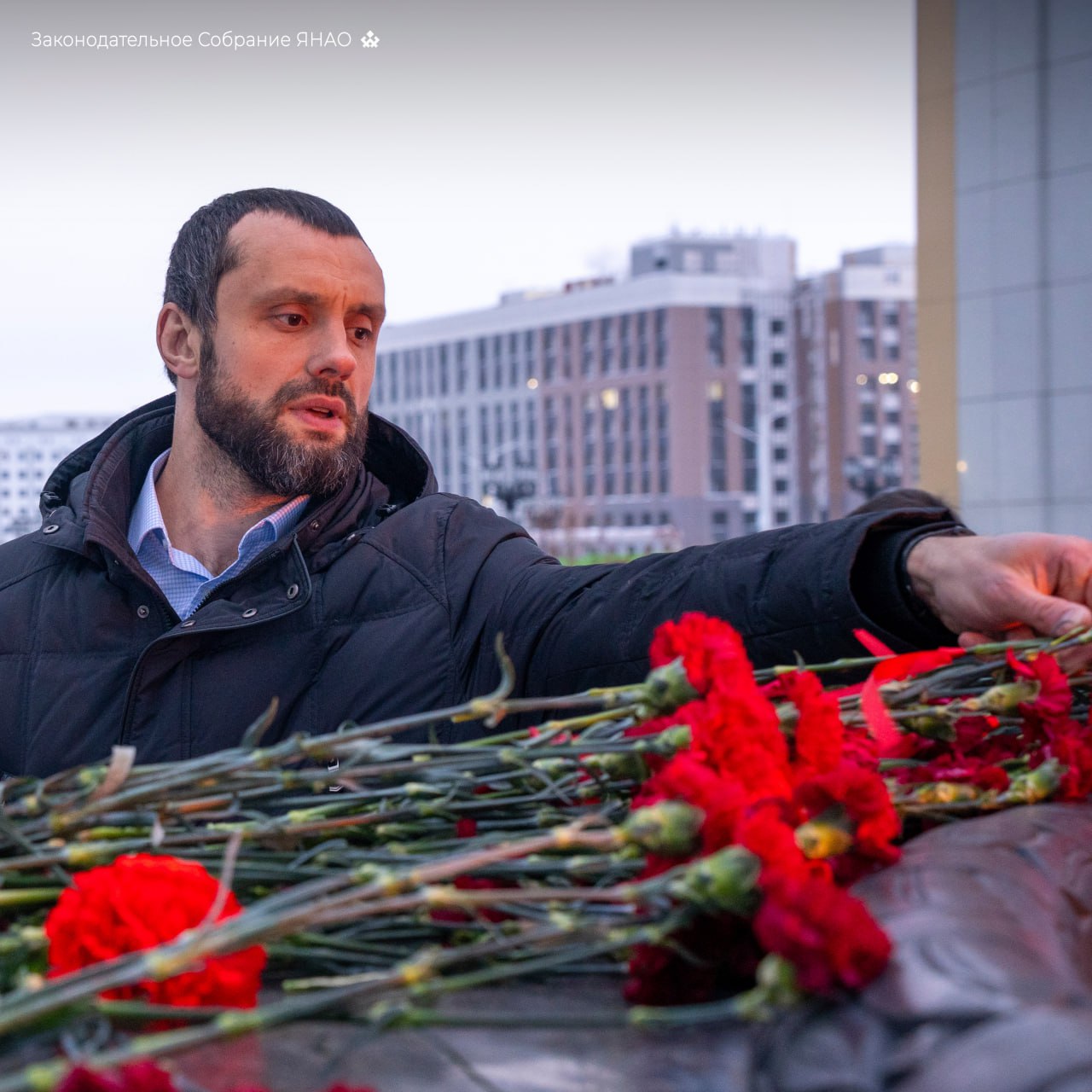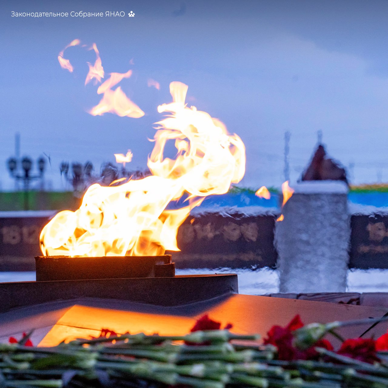 Председатель ямальского парламента и депутаты возложили цветы к Вечному огню в память о Героях Отечества