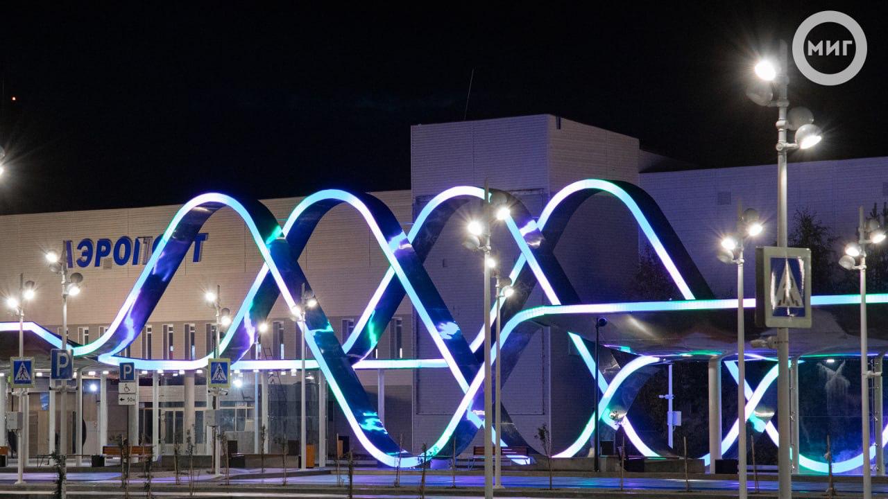 Дизайн площади — со световым оформлением в виде северного сияния, созданным в 2024 году, — перед авиагаванью нефтяной столицы участвует в конкурсе лучших въездных стел и общественных пространств.