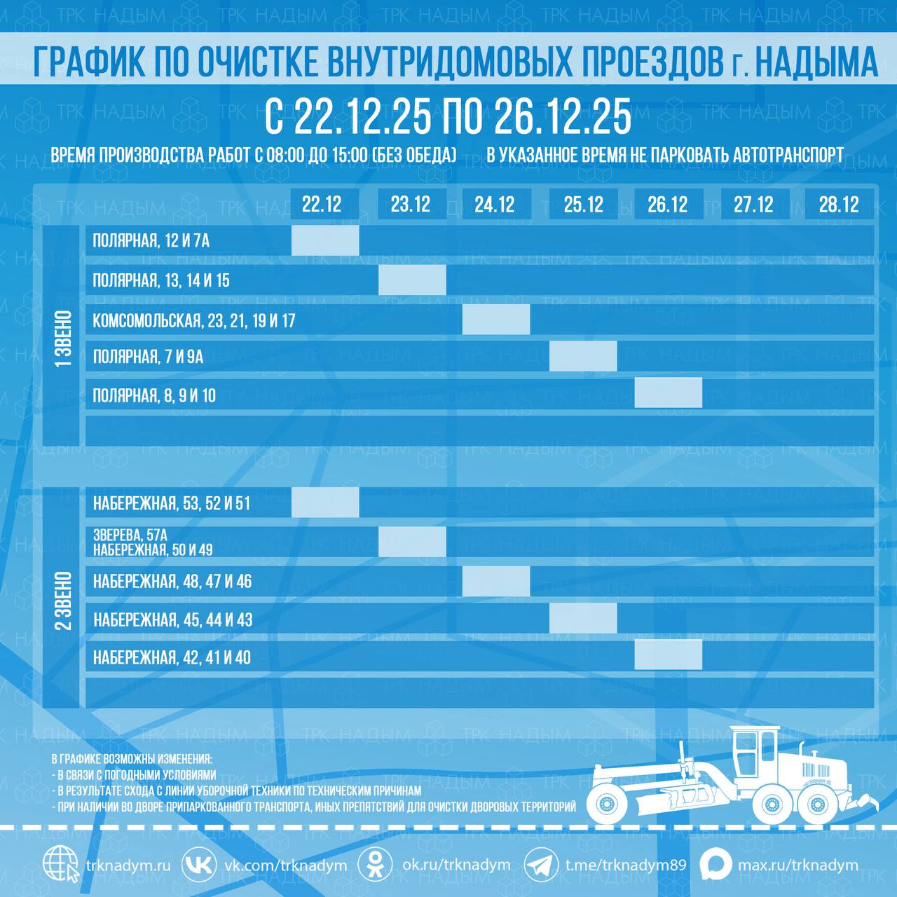График может быть изменён, за актуальной информацией по изменениям на неделе читайте в группе ВКонтакте «Надымгоравтодор»