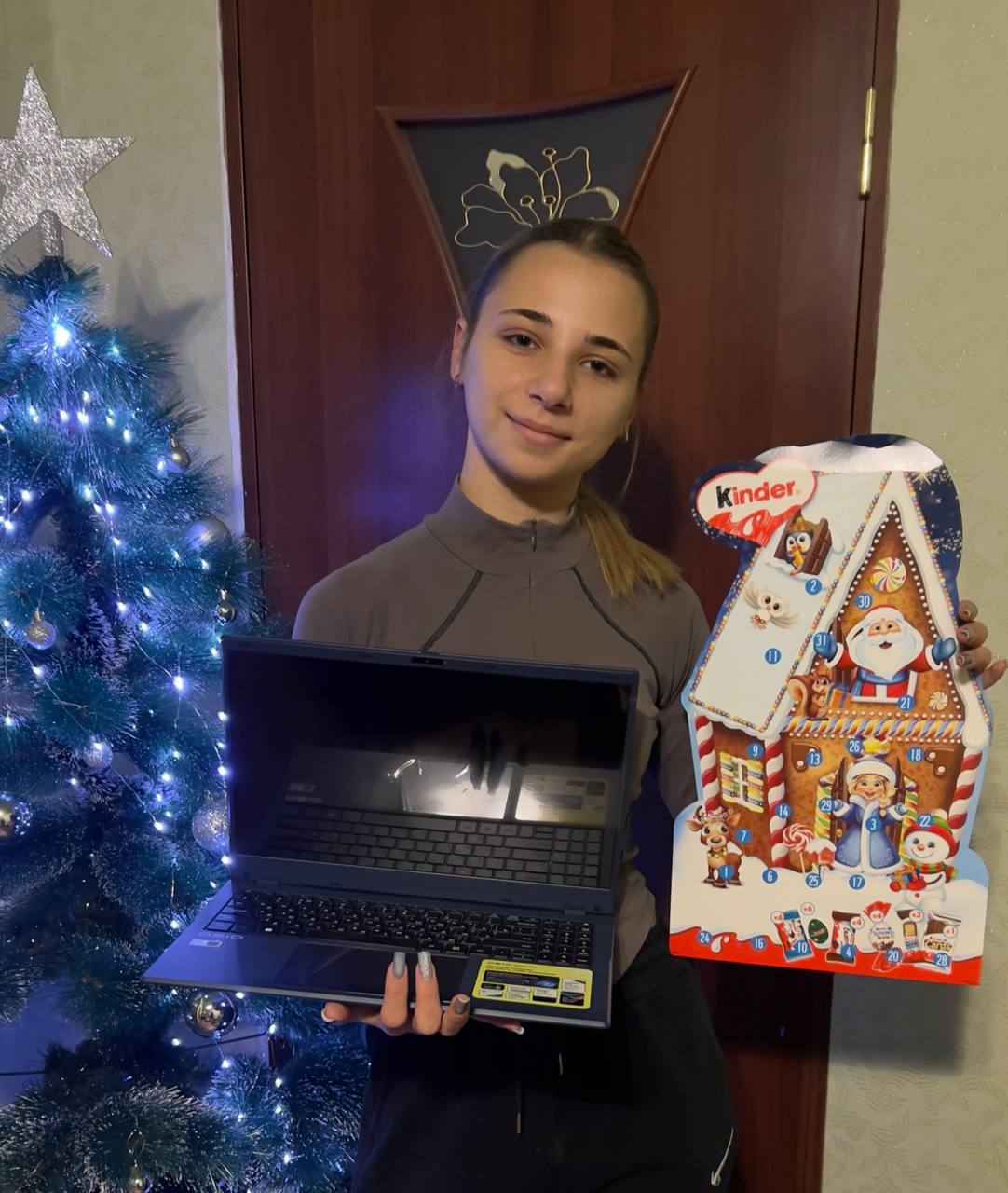 Дарина Пономаренко из Волновахи получила от Салехарда ноутбук и сладкий новогодний подарок. Девушка прислала нам фотоотзыв и передала большой привет северному региону.