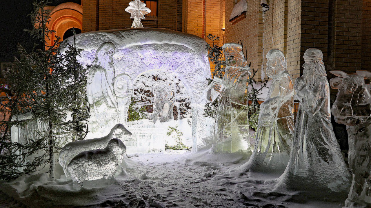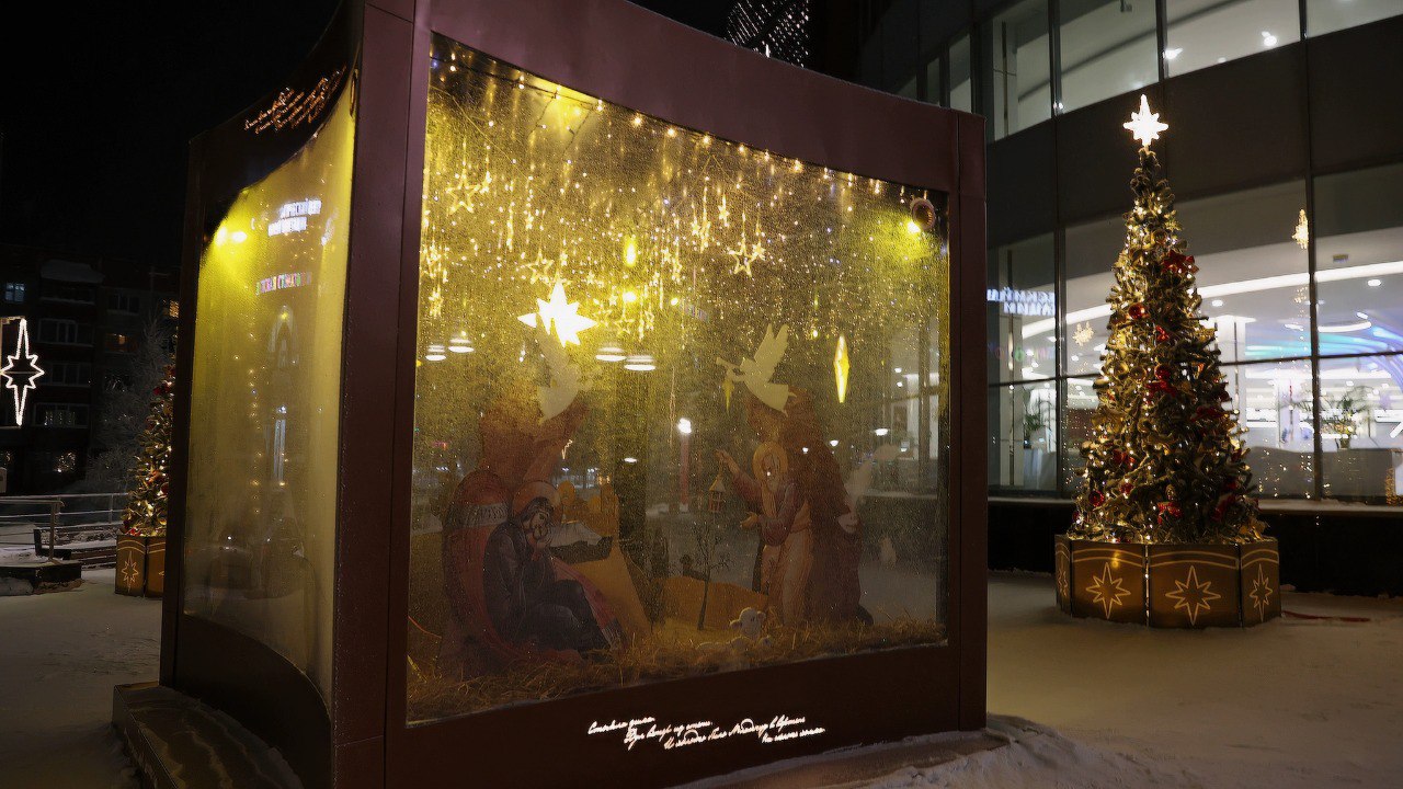 Всего в округе установлено 14 рождественских вертепов, восемь из них выполнены из снега или льда. В окружной столице расположили две композиции: на территории старейшего на Ямале Храма Святых апостолов Петра и Павла и у самого большого в Российской Арктике Собора Преображения Господня.