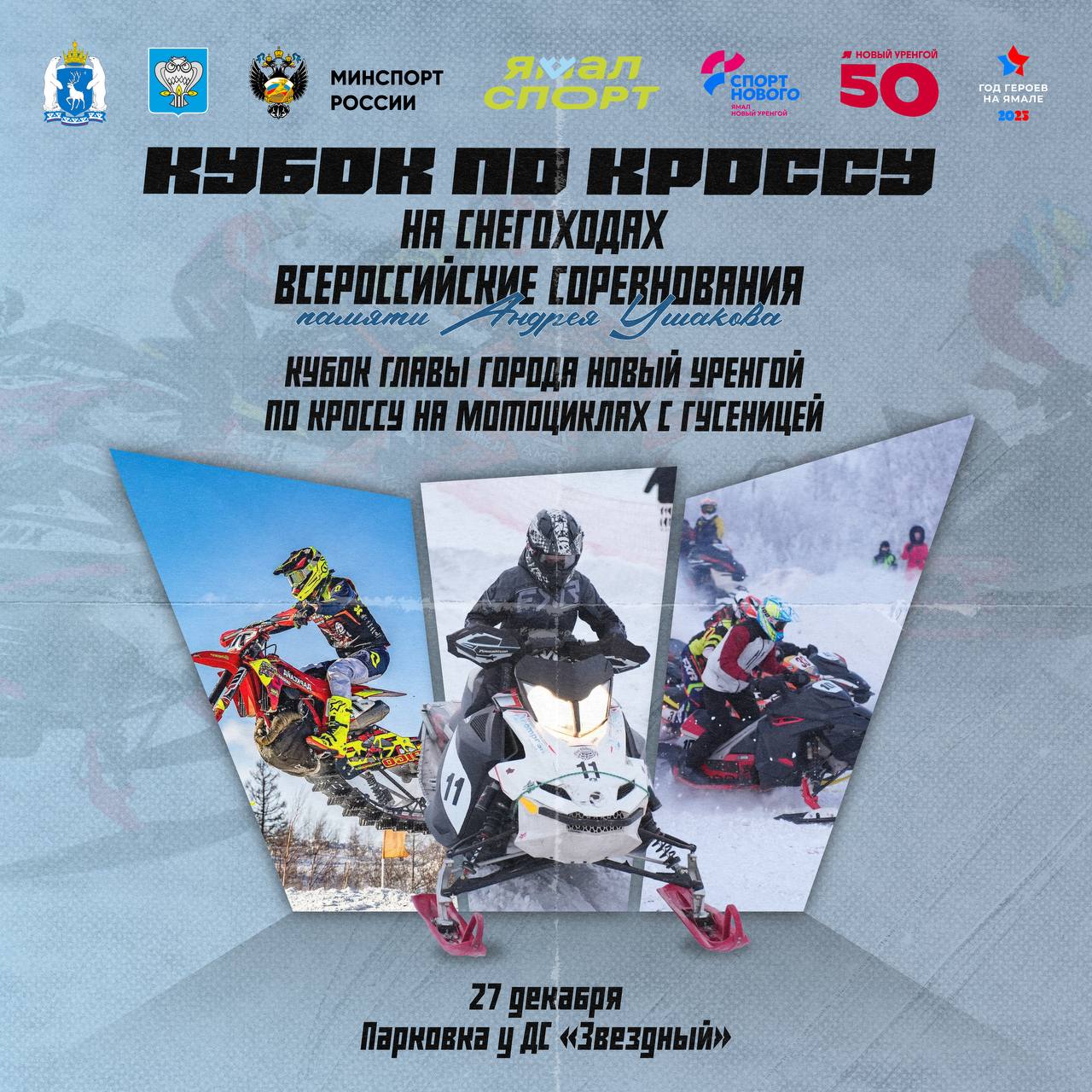 В Новом Уренгое 27 декабря пройдут всероссийские соревнования «Кубок по кроссу на снегоходах памяти Андрея Ушакова» и Кубок Главы города Новый Уренгой по кроссу на мотоциклах с гусеницей.