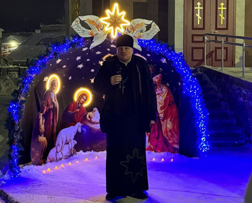 Так в Надыме, в минувшие выходные, вертеп открыли на территории Свято-Никольского храма.