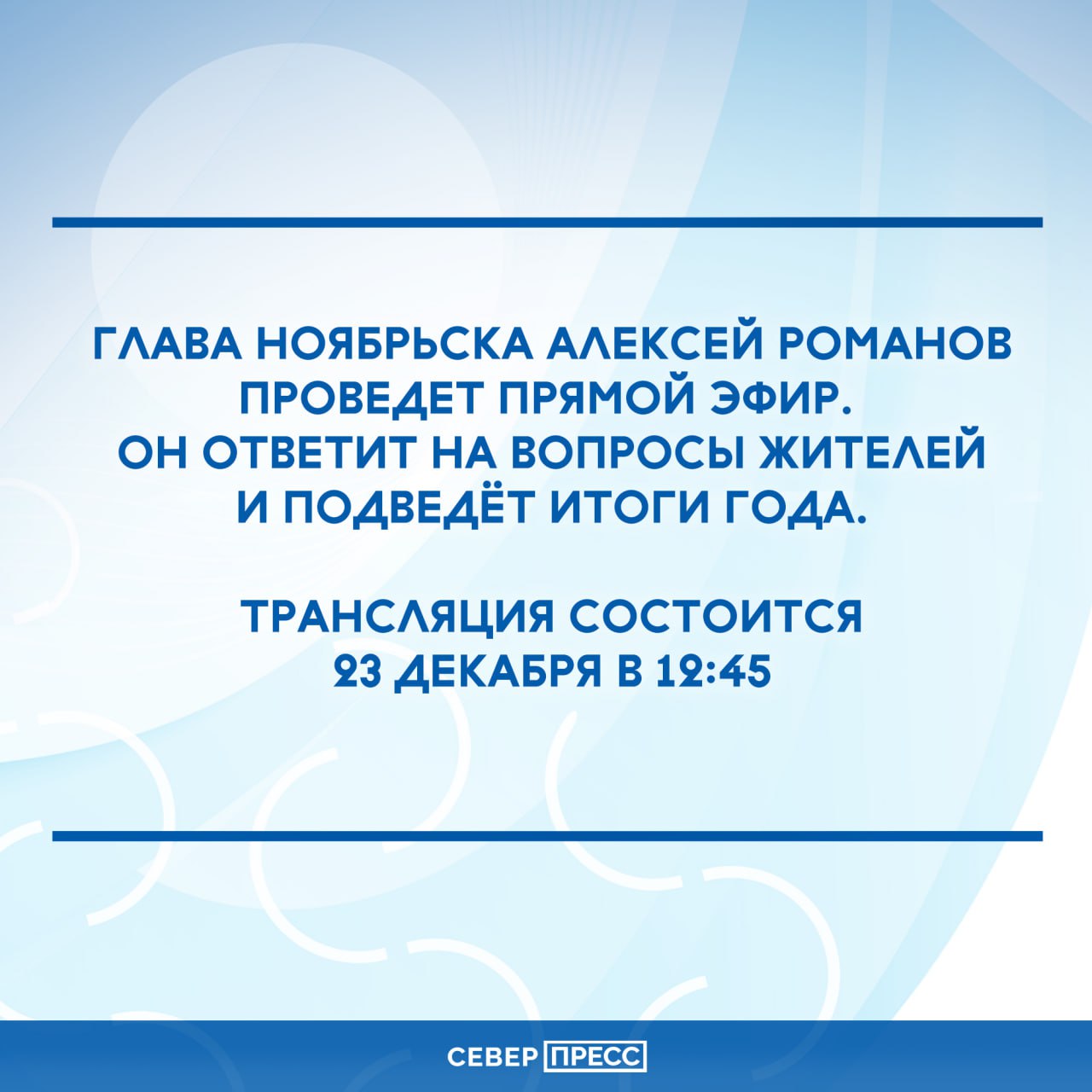 Глава Ноябрьска проведет прямой эфир. Алексей Романов подведет итоги уходящего года и ответит на вопросы горожан.