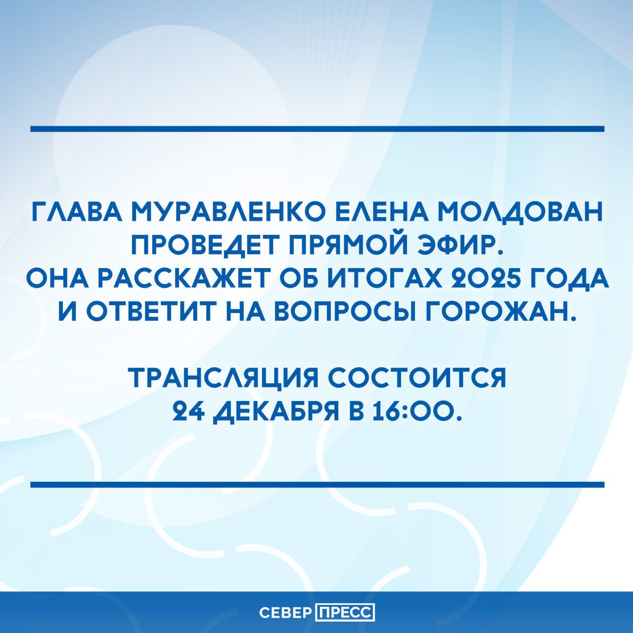 Глава Муравленко сегодня проведет прямой эфир. Елена Молдован подведет итоги уходящего года и ответит на вопросы ямальцев.
