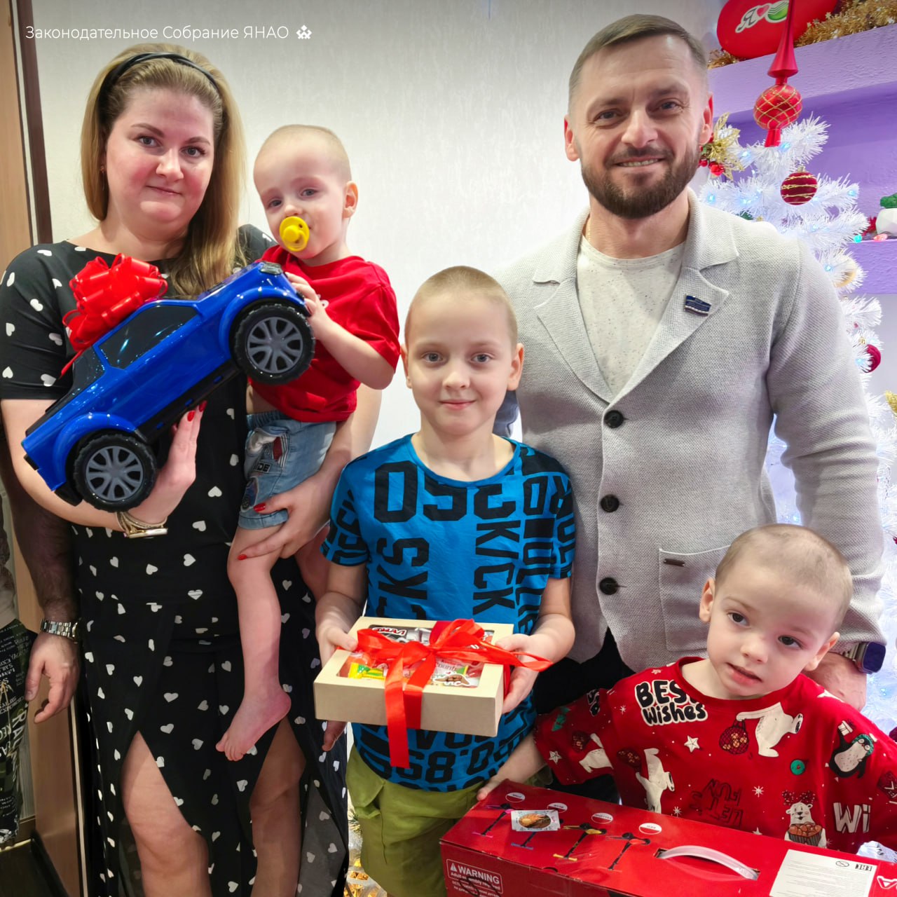 Парламентарий вручил ребятам из Ноябрьска всё, что они загадали на «Ёлке желаний» – Николай и Михаил получили сладости и самокат, а младшему Лёше подарен автомобиль.