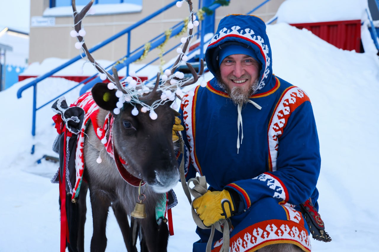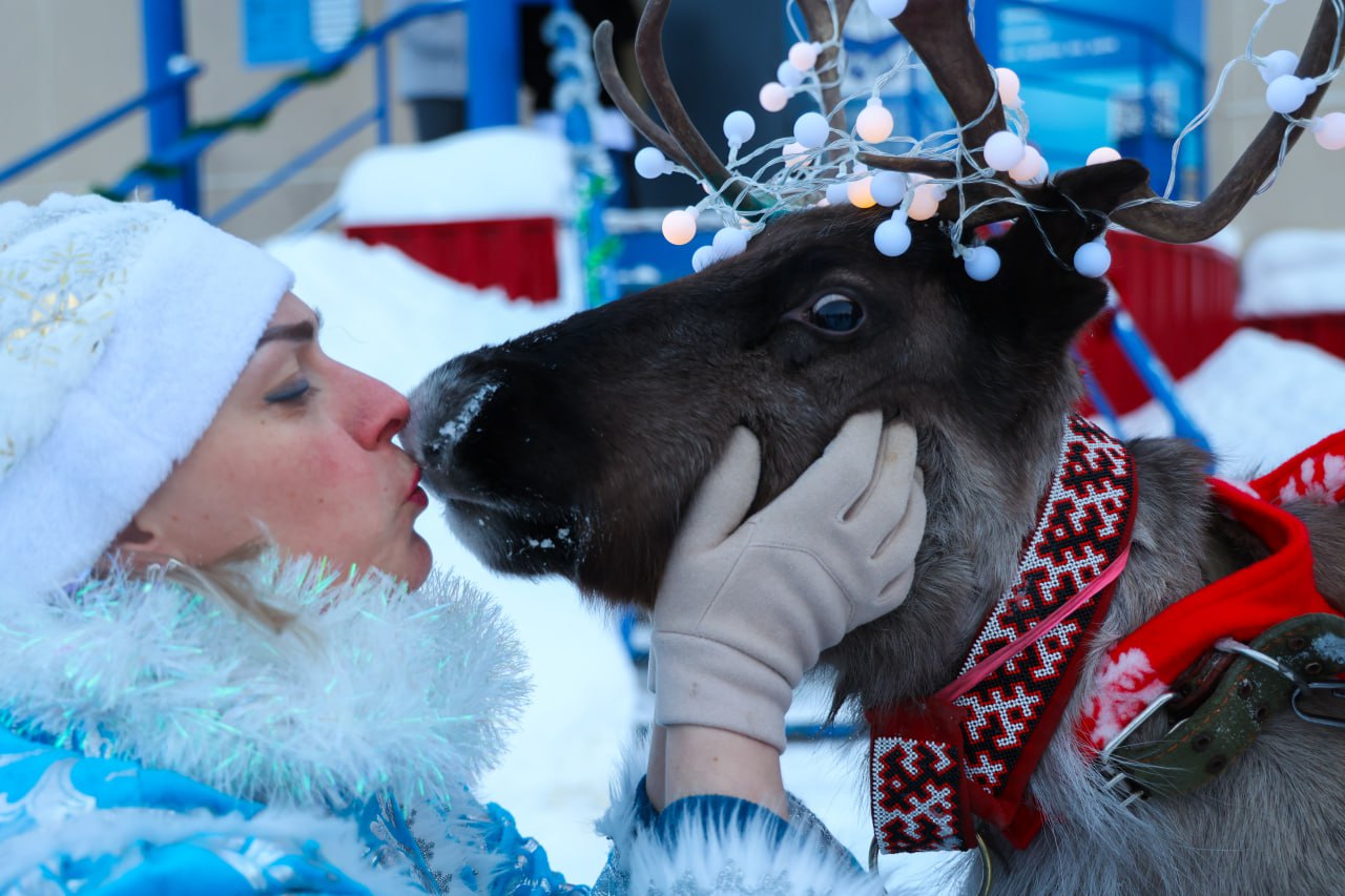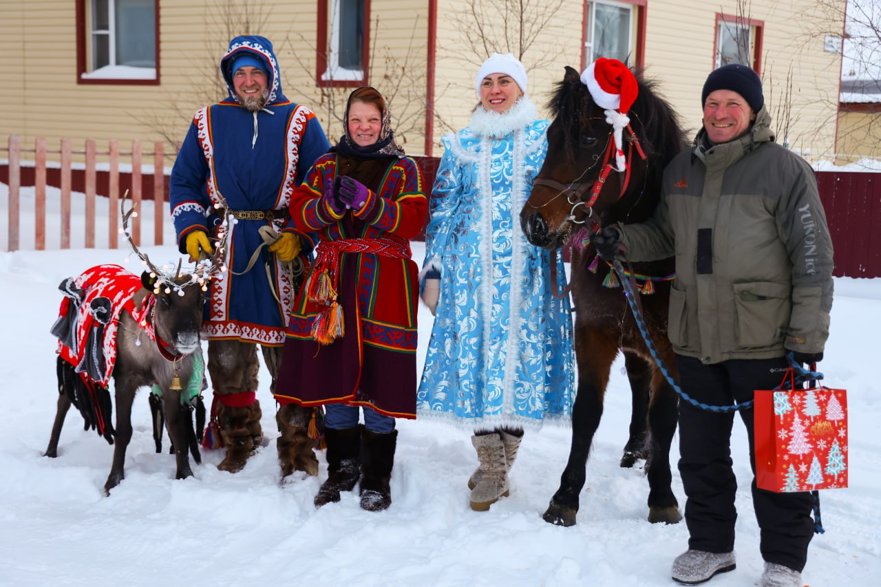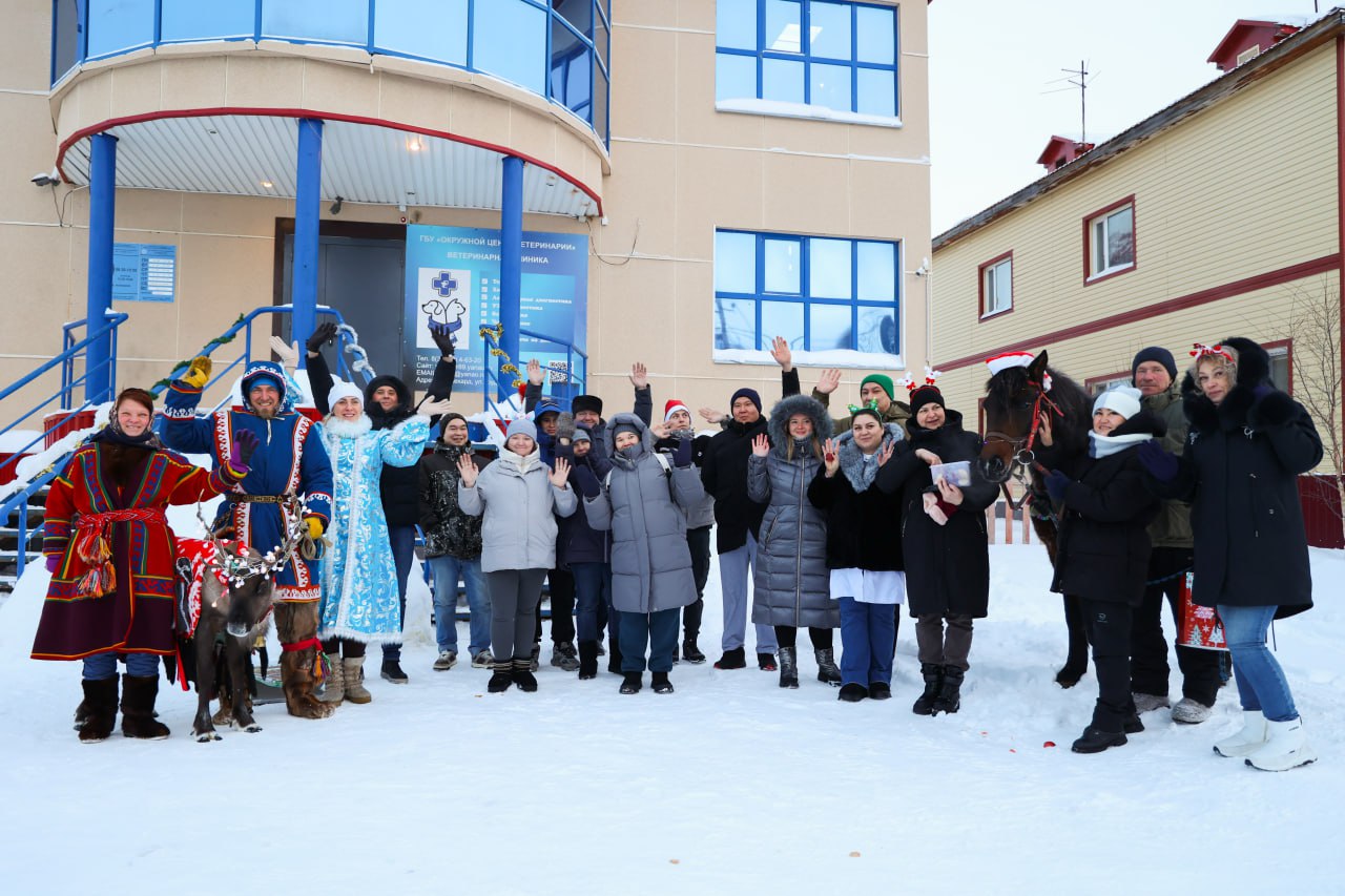 Олень и конь пришли поздравить ямальских ветеринаров с наступающим Новым годом