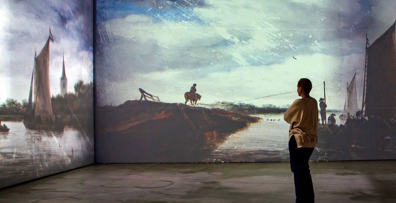 На 400 квадратных метрах центр цифрового искусства «Artplay Media» с помощью технологии Cinema 360 спроецировал изображения на шесть экранов и пол, создавая эффект полного погружения.