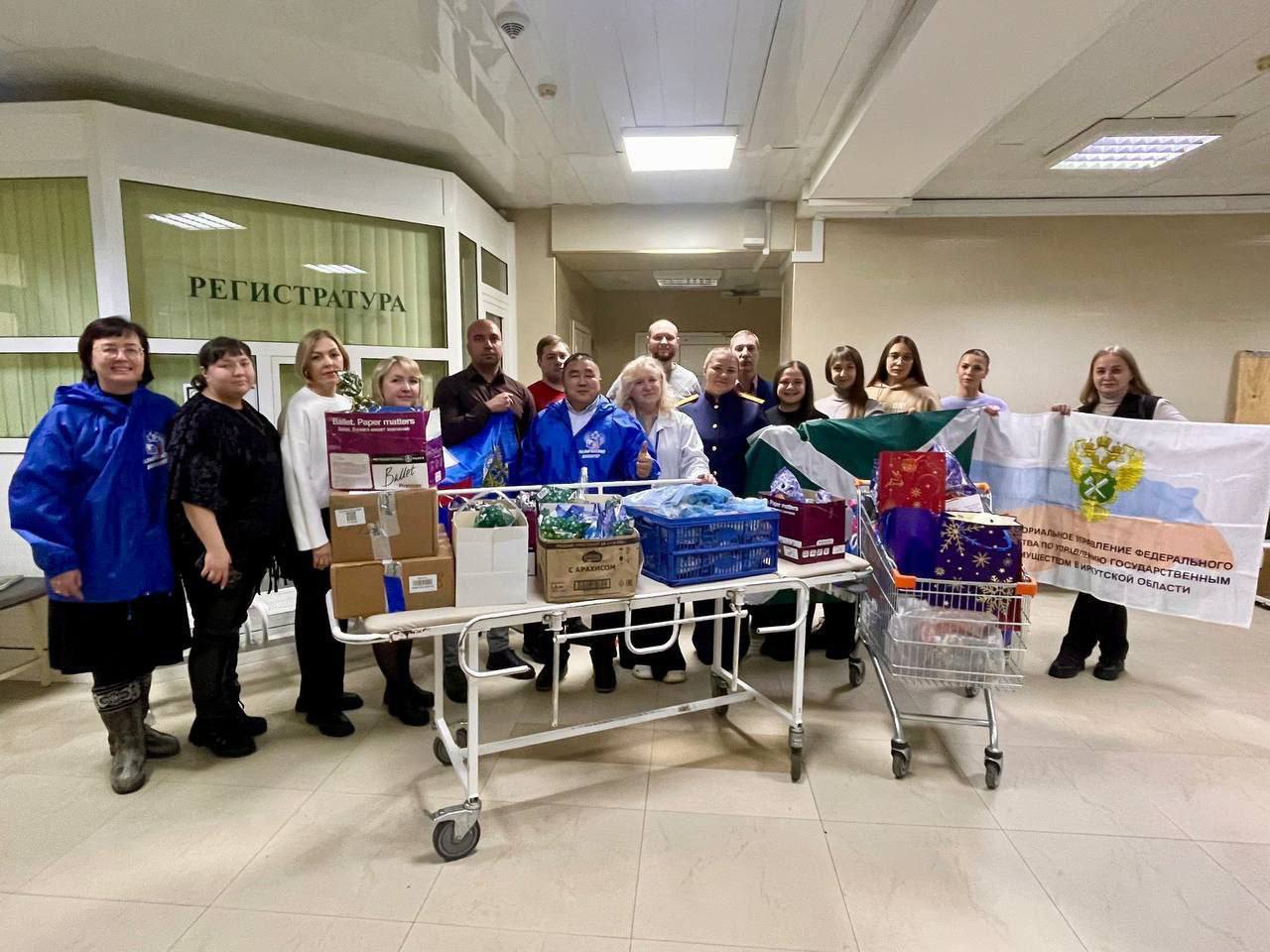 Сотрудники ТУ Росимущества в Иркутской области приняли участие в акции «Подарок солдату», передав военнослужащим сладкие наборы и памятные сувениры с символикой Иркутска. Кроме того, Иркутскому областному детскому хоспису и воспитанникам центра помощи детям, оставшимся без попечения родителей, были переданы игрушки, книги, настольные игры и средства гигиены.