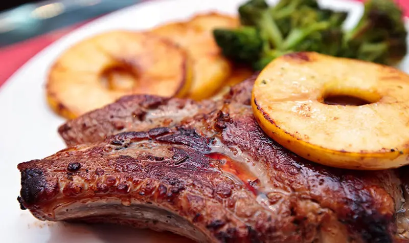 - 4 свиных котлеты на косточке (мясо можно быстро обжарить для усиления аромата);