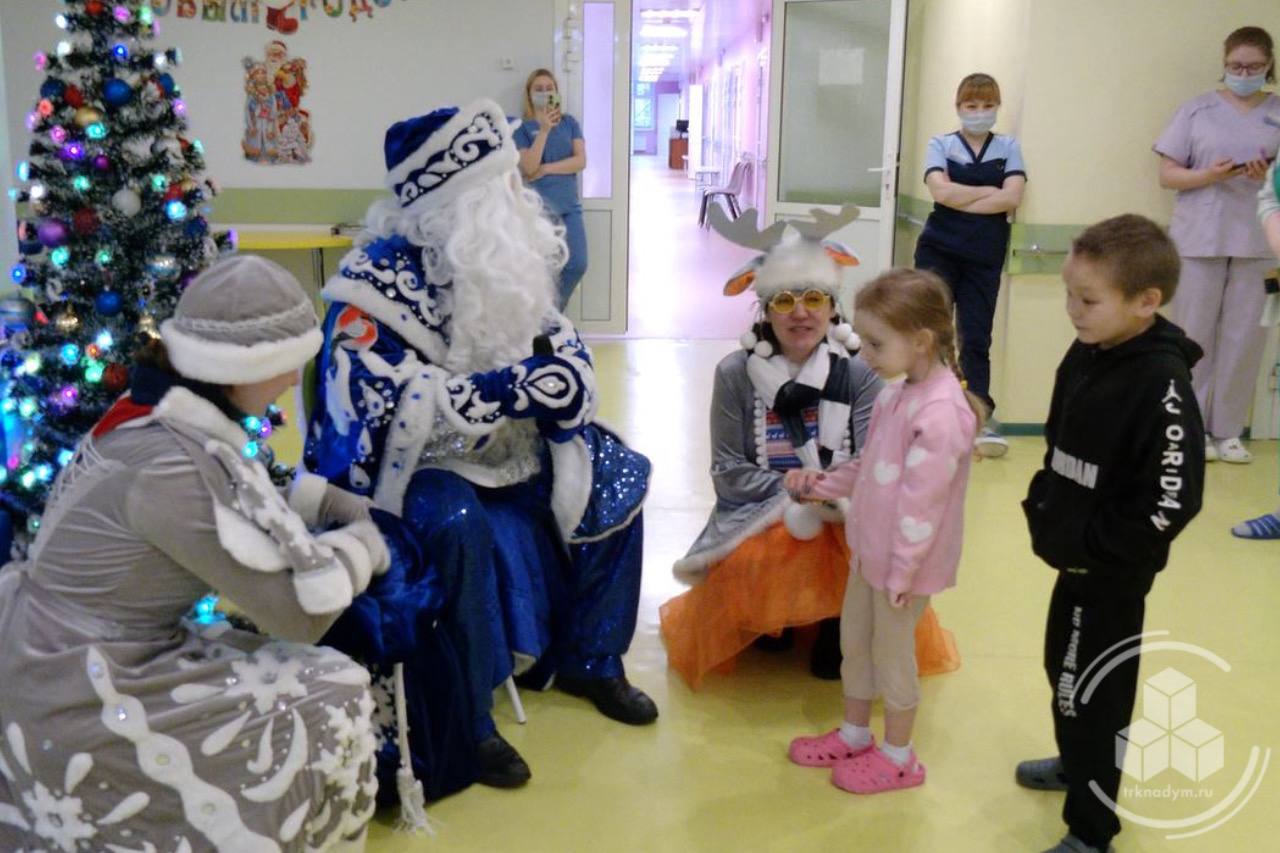 Особым моментом праздника стало появление Деда Мороза и Снегурочки, которые вошли в здание больницы через окно! Этот необычный способ визита добавил происходящему ощущения сказочности и вызвал восторг у детей.